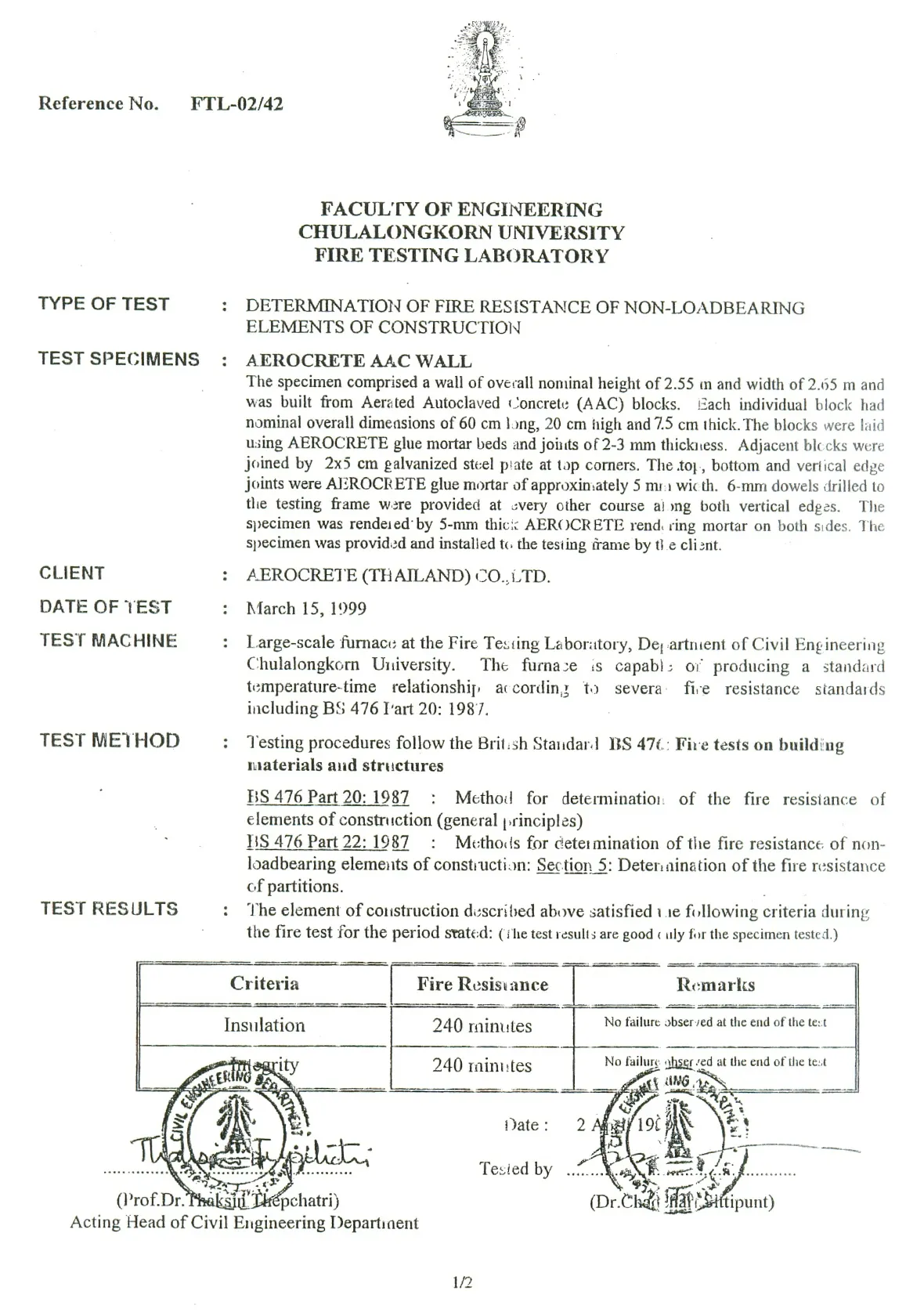 เป็นผนังทนไฟไหม้ได้นานกว่า 4 ชั่วโมง