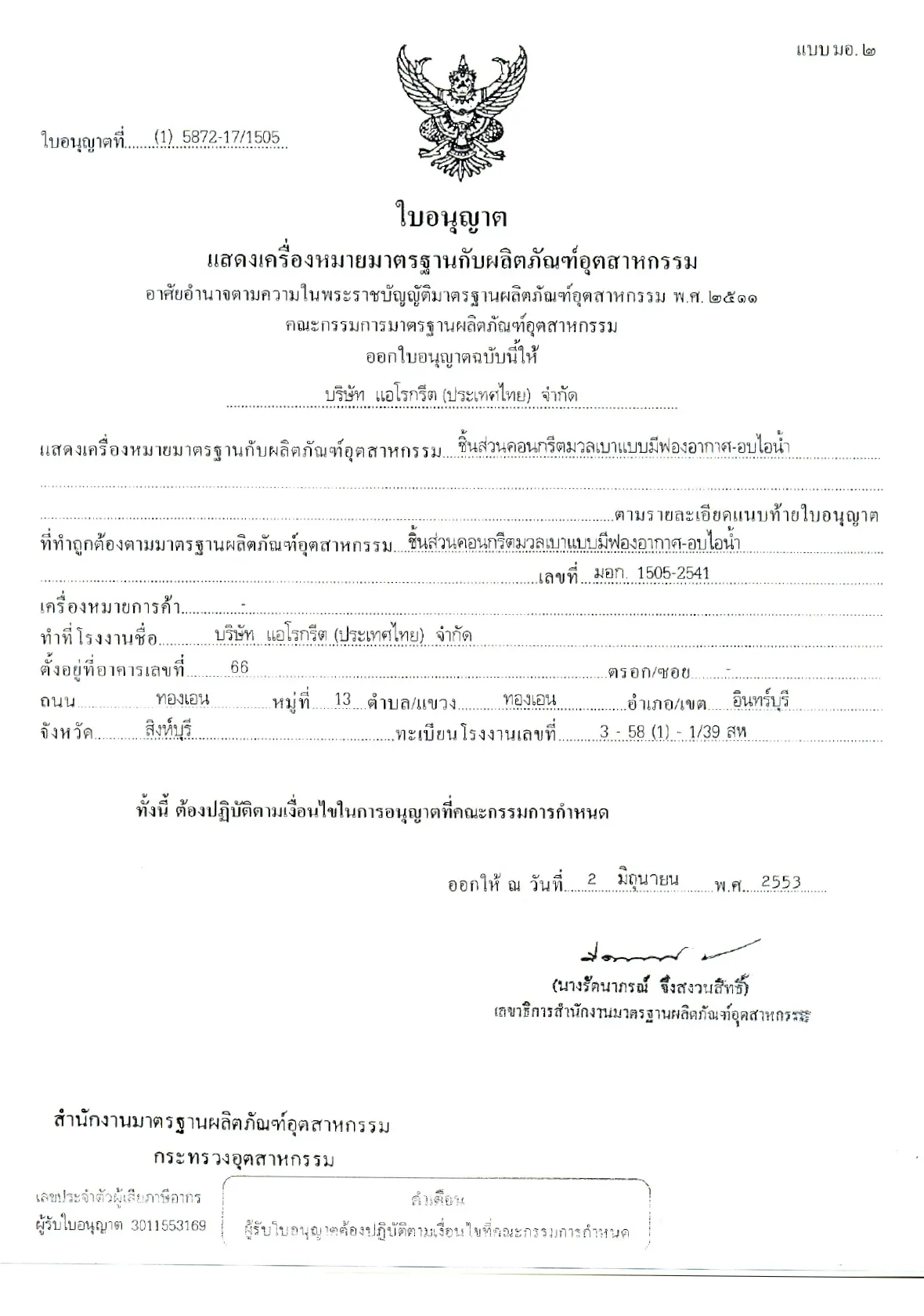 | 23 | บริษัท ซินฮะเฮง 2499 จำกัด | สิงห์บุรี | ภาคกลาง |