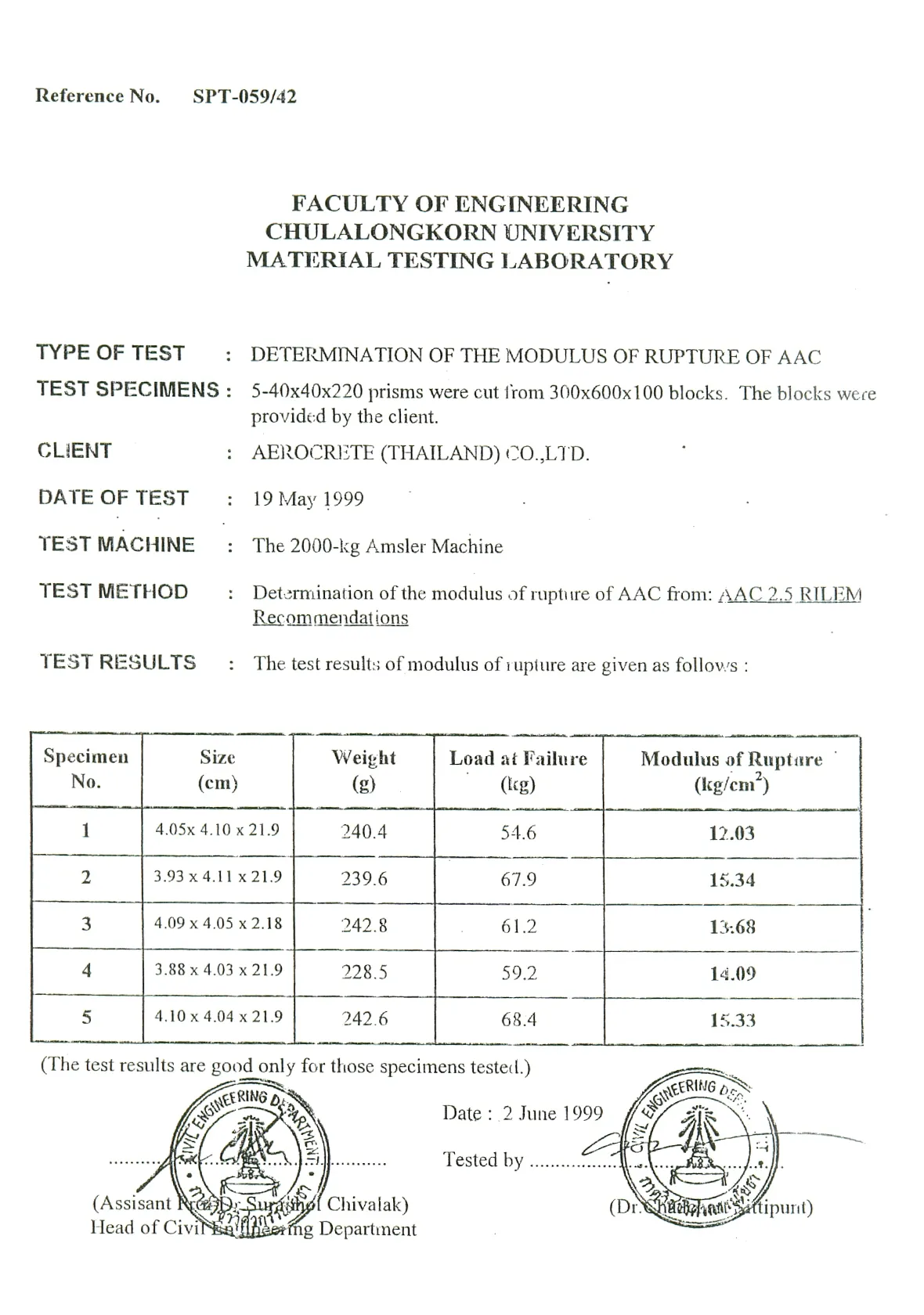 | น้ำหนักต่อก้อน (กก./ก้อน) | 6.33 | 8.4 | 10.5 | 12.87 | 14.7 | 16.8 |