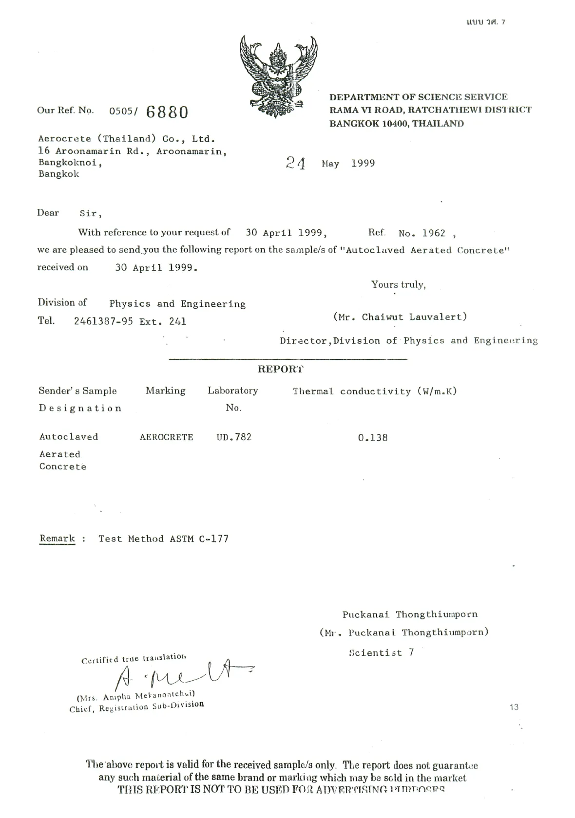 | 13 | บริษัท ทรัพย์สยาม แมททีเรียล จำกัด | ปทุมธานี |