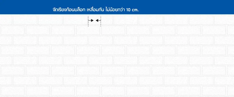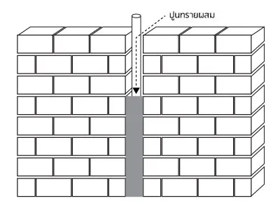 ข้อควรระวัง : การก่อจะต้องใส่ปูนก่อให้เต็ม ปราศจากโพรงหรือรู