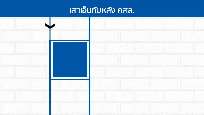 ก่อบล็อกชนท้องพื้น หรือท้องคานทั่วไป เว้นช่องว่างส่วนบน 2-3 ซม.